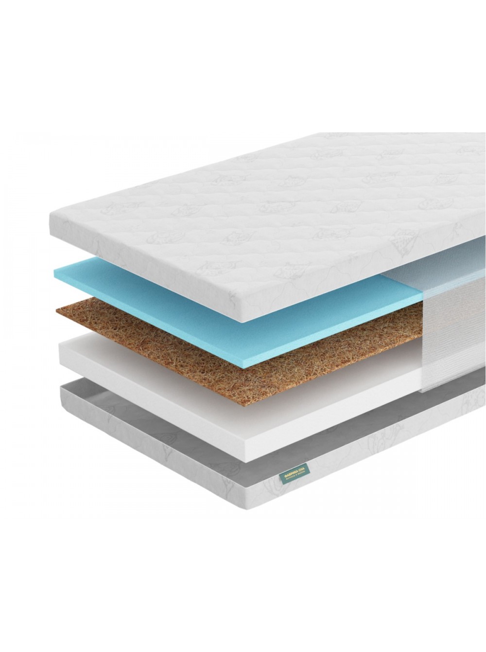 2. Латексированная кокосовая койра (1см) Кокосовая койра - 100% натуральный материал с уникальными свойствами. Койра, скрепленная натуральным латексом, дает объемную упругую воздухопроницаемую структуру. Такой материал используется в моделях, предназначенных для любителей более жесткого и упругого спального места. Естественные вентиляционные качества, эластичность, прочность, упругость, гигиеничность и антиаллергенность, наряду с очень долгим сроком службы, делают этот материал идеальным для наполнения матраса.